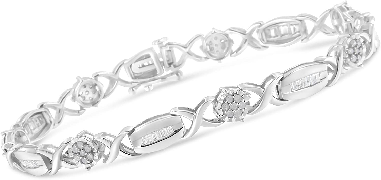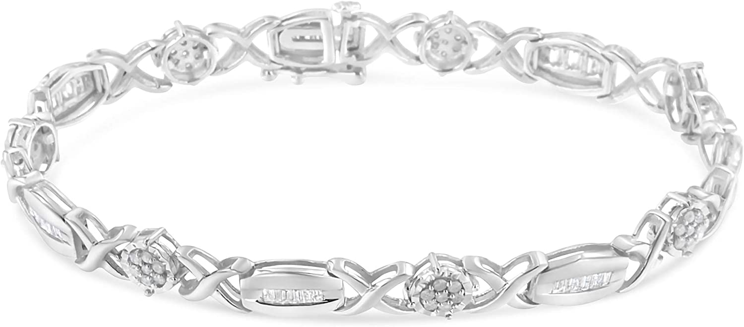 • A BRILLIANT CHOICE – Why choose imitation diamonds when you can have the real thing? Stunning sterling silver "X" link bracelet with glimmering round-cut and baguette-cut diamonds. This bracelet fastens securely with a box clasp. It is 7 inches long, best for small and medium sized wrists.